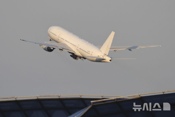 [모스크바=AP/뉴시스] 러시아가 모스크바-평양 직항 여객기 운항을 시작한 가운데 27일(현지 시간) 모스크바 외곽 셰레메티예보 국제공항에서 북한 평양행 노드윈드항공 소속 보잉 777-200ER 여객기가 이륙하고 있다. 2025.07.28.