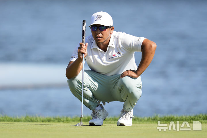 [블레인=AP/뉴시스] 커트 기타야마(미국)가 27일(현지 시간) 미 미네소타주 블레인의 TPC 트윈시티스에서 열린 미국프로골프(PGA) 투어 3M 오픈 최종 라운드 18번 그린에서 라인업하고 있다. 기타야마는 최종 합계 23언더파 261타로 우승하며 투어 2승째를 올렸다. 2025.07.28.