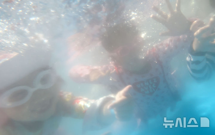 [부산=뉴시스] 하경민 기자 = 전국적으로 폭염이 기승을 부리고 있는 28일 부산 연제구청에 마련된 물놀이장을 찾은 어린이들이 잠수를 하며 더위를 식히고 있다.