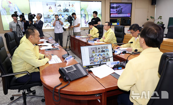 [세종=뉴시스] 강종민 기자 = 전재수 해양수산부 장관이 28일 세종시 정부세종청사 해수부 종합상황실에서 열린 해양수산 재난안전 관계관 회의에서 여름철 해양수산 분야별 재난안전 상황을 점검하고 있다. 2025.07.28. [email protected]