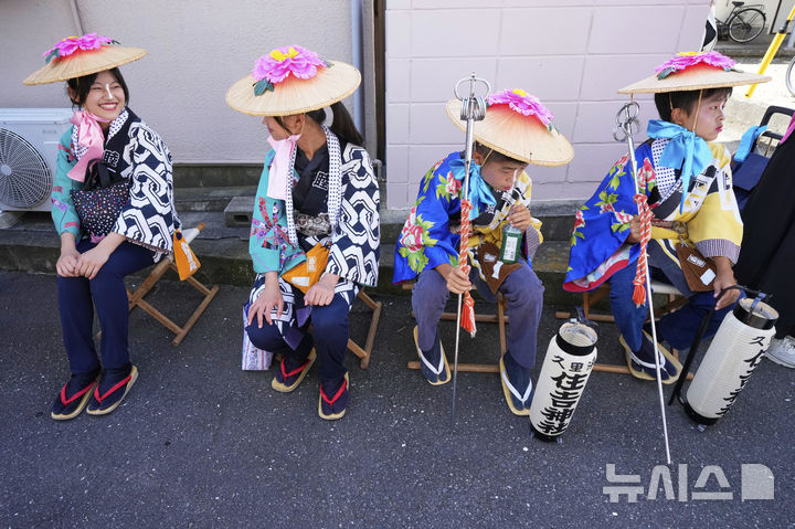 축제 행렬 이끄는 도중 휴식하는 日 어린이들