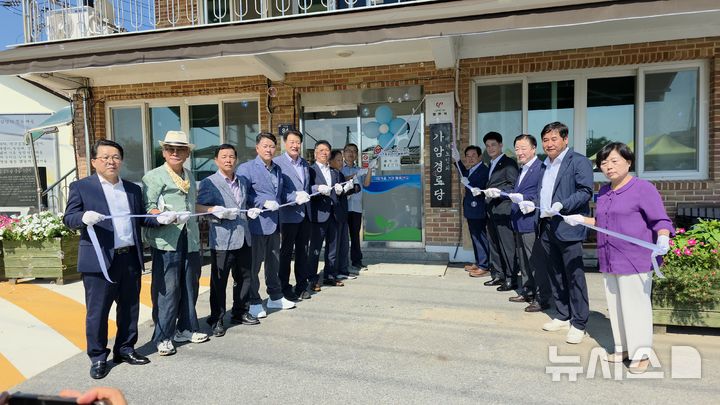[진천=뉴시스] 29일 충북 진천군 진천읍 가암마을에서 '75호 나눔 마을 현판식'이 열리고 있다. 앞서 진천군 자원봉사센터는 지난 17~26일 생활환경 개선, 복지서비스 확대 등의 다양한 재능 나눔 봉사를 진행했다. (사진=진천군 제공) 2025.07.29. [email protected]