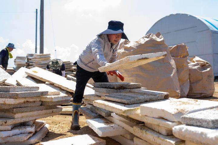 [증평=뉴시스] 서주영 기자 = 이재영 충북 증평군수가 29일 충남 예산군의 수해 피해 현장을 찾아 복구 작업을 하고 있다. (사진 = 증평군 제공) 2025.07.29. [email protected]