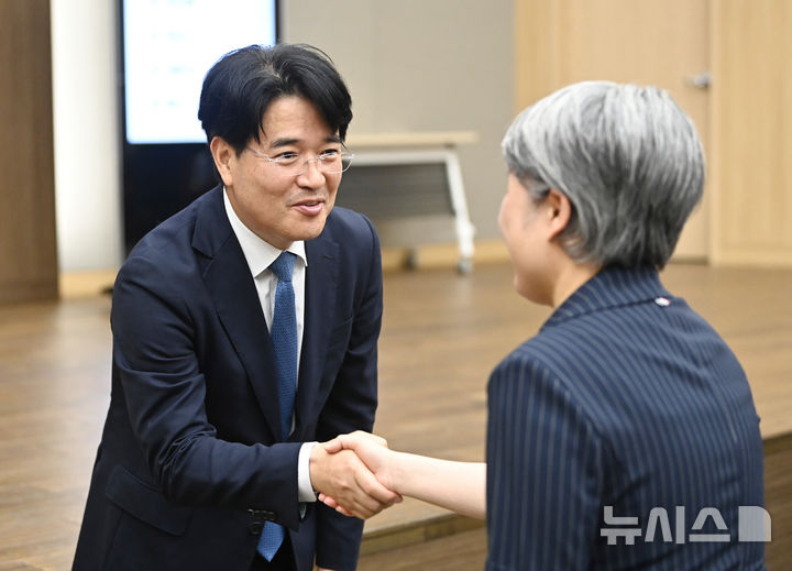 [수원=뉴시스] 김종택 기자 = 박재억 신임 수원지방검찰청 검사장이 29일 경기 수원시 영통구 수원지검 대강당에서 열린 제46대 검사장 취임식을 마친 뒤 직원들과 인사하고 있다. 2025.07.29. [email protected]