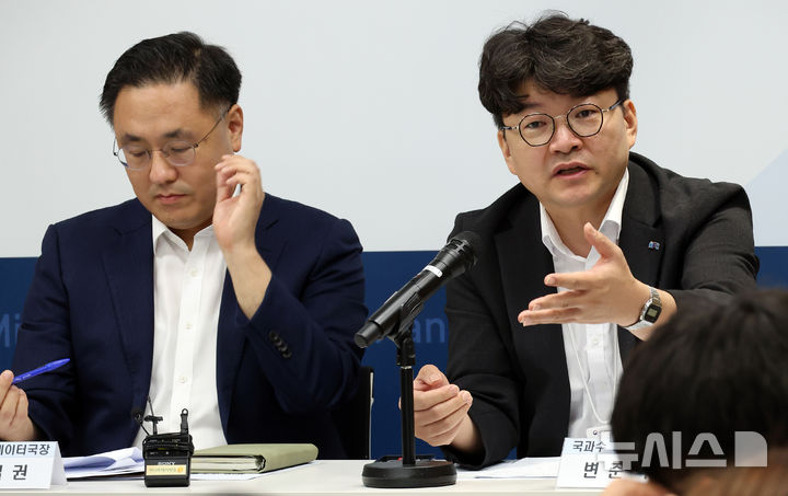 [세종=뉴시스] 강종민 기자 = 배일권 행정안전부 공공지능데이터 국장과 변준석 국립과학수사연구원 디지털 과장 등이 지난 29일 세종시 정부세종청사에서 딥페이크 불법콘텐츠 탐지 분석모델과 활용성과에 대해 설명하고 있다. 2025.07.30. [email protected]