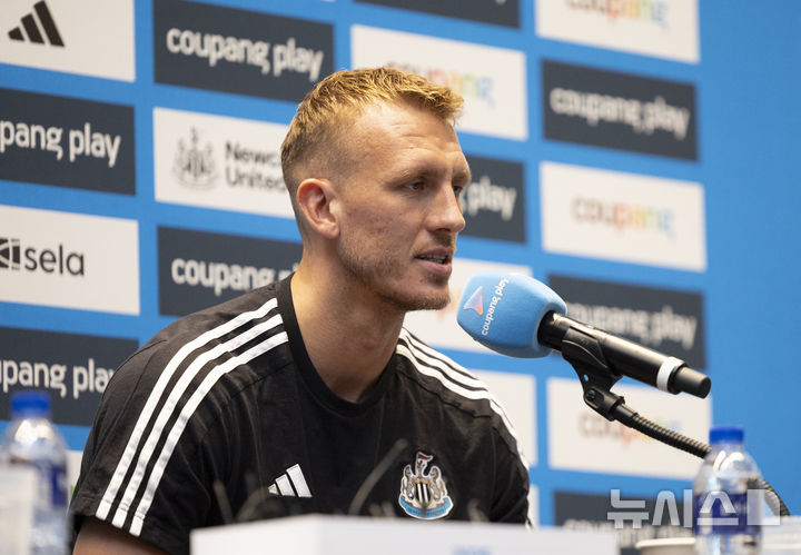 [서울=뉴시스] 김근수 기자 = 영국 프리미어리그 뉴캐슬 유나이티드 댄번이 29일 서울 여의도 IFC몰에서 열린 쿠팡시리즈 1차전 대비 프리 기자회견에서 취재진 질문에 답하고 있다.