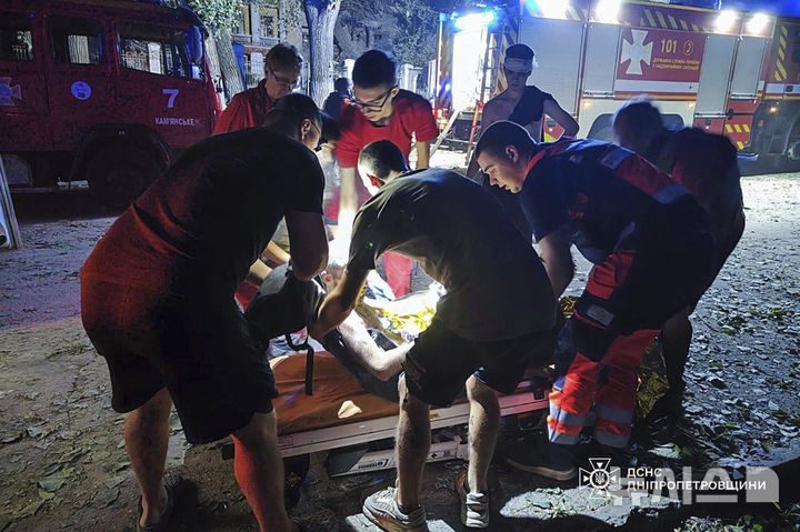 [카미얀스케=AP/뉴시스] 우크라이나 비상사태부가 제공한 사진에 29일(현지 시간) 드니프로페트로우스크주 카미얀스케의 한 병원이 러시아의 공습을 받은 뒤 응급 의료진이 부상한 민간인을 응급 처치하고 있다. 러시아가 우크라이나의 교도소와 의료시설 등을 공습해 최소 22명이 사망했다. 2025.07.30.