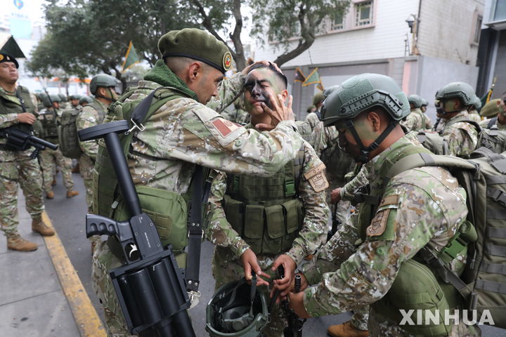 [리마=신화/뉴시스] 페루 군인들이 29일(현지 시간) 수도 리마에서 페루 독립 제204주년 기념 군사 퍼레이드 준비를 하고 있다. 페루는 아르헨티나 출신 호세 데 산마르틴 장군이 1821년 7월 28일 리마에 입성해 스페인으로부터 독립을 선언한 것을 기념한다. 2025.07.30.