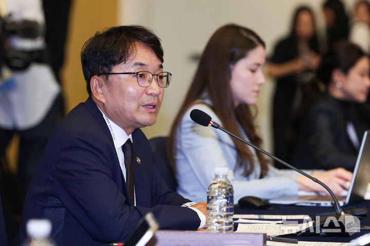 [인천=뉴시스] 권창회 기자 = 김광용 행정안전부 재난안전관리본부장이 30일 오전 인천 연수구 송도컨벤시아에서 열린 2025 APEC 재난분야 회의체 개회세션에서 인사말을 하고 있다. 2025.07.30. [email protected]