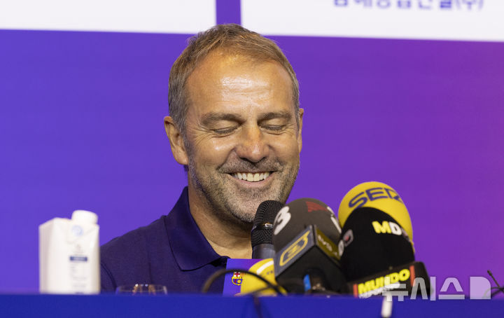 [서울=뉴시스] 김근수 기자 = 한지 플릭 스페인 프리메라리가 FC 바르셀로나 감독이 30일 서울 종로구 포시즌스 호텔 서울 그랜드 볼룸에서 열린 FC 바르셀로나 2025 아시아 투어 에디션 공식 기자회견에서 취재진 질문에 답하는 도중 미소를 보이고 있다.