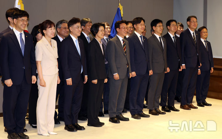 [세종=뉴시스] 강종민 기자 = 김민석 국무총리가 30일 세종시 정부세종청사에서 차관급 임명장 수여식 후 기념촬영을 하고 있다. 2025.07.30. [email protected]