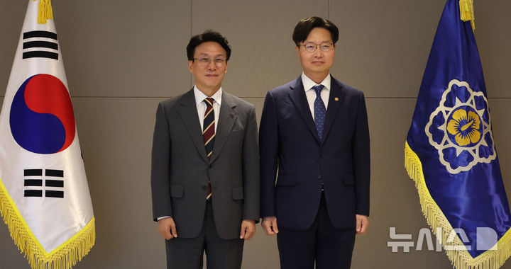 [세종=뉴시스] 강종민 기자 = 김민석 국무총리가 30일 세종시 정부세종청사에서 구혁채 과학기술정보통신부 1차관에게 임명장을 전달한 뒤 기념촬영을 하고 있다. 2025.07.30. [email protected]