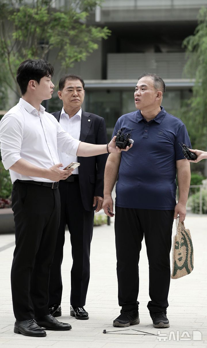 [서울=뉴시스] 정병혁 기자 = 공천개입 의혹 및 여론조사 조작 의혹을 받고 있는 명태균 씨가 31일 서울 종로구 김건희 특검팀(특별검사 민중기) 사무실로 조사를 받기 위해 출석하며 취재진 질문에 답하고 있다. 2025.07.31. [email protected]
