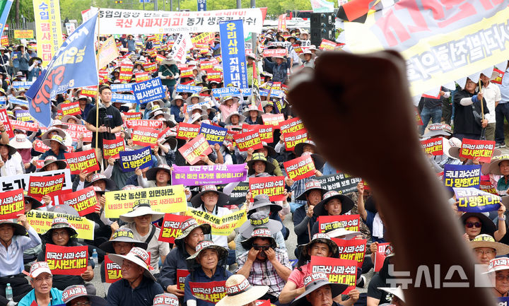 미국산 사과 수입 반대 촉구하는 사과 재배 농민들