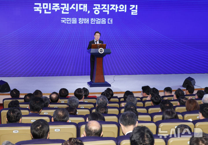 [서울=뉴시스] 최동준 기자 = 이재명 대통령이 31일 서울 종로구 정부서울청사에서 열린 '국민주권시대 공직자의 길' 고위공직자 워크숍에서 특강하고 있다. (대통령실통신사진기자단) 2025.07.31. [email protected]