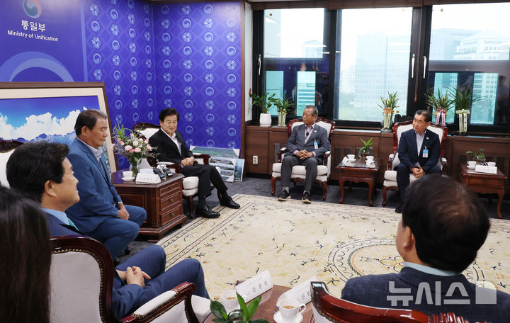 [서울=뉴시스] 김명원 기자 = 정동영 통일부 장관이 31일 서울 종로구 정부서울청사에서 열린 개성공단기업협회 회장단 면담에 참석해 발언하고 있다. 2025.07.31. [email protected]