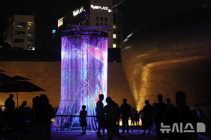[서울=뉴시스] 김진아 기자 = 31일 서울 중구 동대문디자인플라자(DDP)에서 '서울라이트 DDP 여름' 미디어아트가 펼쳐지고 있다.