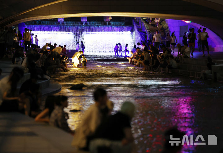 [서울=뉴시스] 김진아 기자 = 열대야가 계속되고 있는 31일 서울 종로구 청계천을 찾은 시민들이 휴식을 취하며 더위를 식히며 있다.