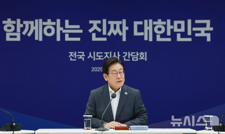 [서울=뉴시스] 고범준 기자 = 이재명 대통령이 1일 서울 용산 대통령실 청사에서 열린 전국 시도지사 간담회에서 발언하고 있다. (대통령실통신사진기자단) 2025.08.01. [email protected]
