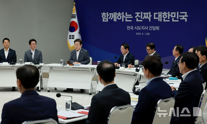 [서울=뉴시스] 고범준 기자 = 이재명 대통령이 1일 서울 용산 대통령실 청사에서 열린 전국 시도지사 간담회에서 발언하고 있다. (대통령실통신사진기자단) 2025.08.01. [email protected]
