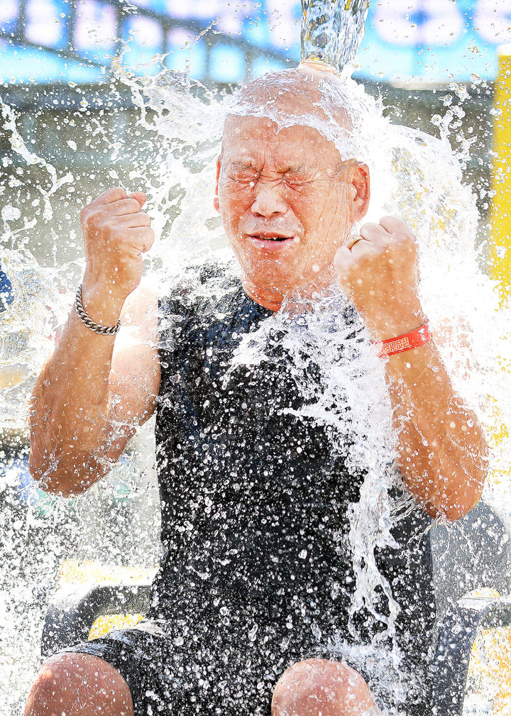 [서울=뉴시스] 정병혁 기자 = 본격적인 휴가철이 시작된 1일 오후 대화면 땀띠공원 일원에서 열린 강원 평창군 대표 여름 축제인 '2025 평창더위사냥축제'를 찾은 방문객들이 물양동이 냉천수 폭포를 맞으며 더위를 식히고 있다. (사진=평창군 제공) 2025.08.01. [email protected] *재판매 및 DB 금지