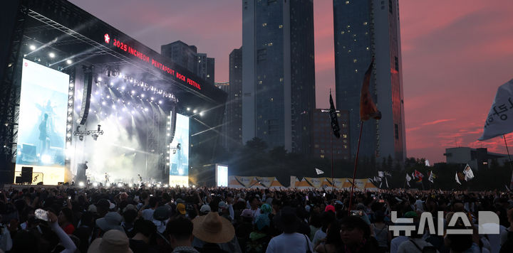 [인천=뉴시스] 전진환 기자 = 1일 오후 인천 연수구 송도달빛축제공원에서 열린 '2025 인천펜타포트 락 페스티벌'에서 관람객들이 장기하의 공연을 관람하고 있다. 2025.08.01. [email protected]