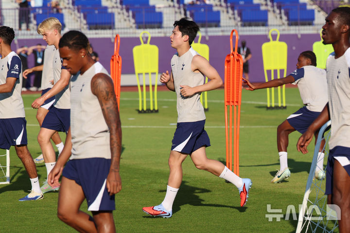 [안양=뉴시스] 권창회 기자 = 잉글랜드 프리미어리그 토트넘 홋스퍼 양민혁이 2일  경기 안양시 안양종합운동장에서 열린 2025 쿠팡플레이 시리즈 토트넘 오픈 트레이닝에서 훈련을 하고 있다. 2025.08.02. [email protected]
