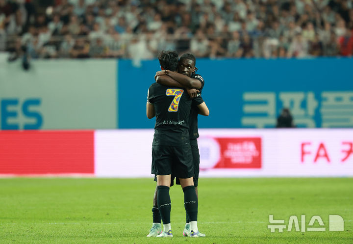 [서울=뉴시스] 이영환 기자 = 3일 오후 서울 마포구 서울월드컵경기장에 열린 2025 쿠팡플레이시리즈 뉴캐슬 유나이티드와 토트넘 홋스퍼의 경기 후반전에서 교체된 토트넘 손흥민이 동료들과 인사를 나누고 있다. 2025.08.03. [email protected]