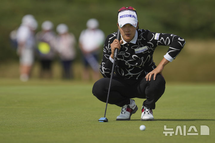 [포스콜=AP/뉴시스] 김아림이 3일(현지 시간) 영국 웨일스 포스콜의 로열 포스콜 골프클럽에서 열린 미국여자프로골프(LPGA) 투어 AIG 위민스 오픈 최종 라운드 9번 홀 그린에서 라인업하고 있다. 김아림은 최종 합계 7언더파 281타로 공동 4위를 기록하며 대회를 마쳤다. 2025.08.04.