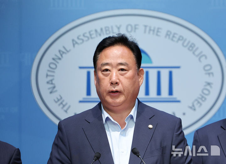 [서울=뉴시스] 김명년 기자 = 어기구 더불어민주당 의원이 4일 오전 서울 여의도 국회에서 열린 철강산업 경쟁력 강화와 녹색철강기술 전환을 위한 K-스틸법 제정안 발의 기자회견에서 발언하고 있다. 2025.08.04. [email protected]