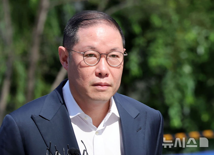 [서울=뉴시스] 홍효식 기자 = 조현상 HS효성 부회장이 4일 서울 종로구 KT 광화문빌딩 웨스트에 마련된 윤석열 전 대통령 부인 김건희 여사 의혹을 수사하는 민중기 특별검사 사무실로 출석하고 있다. 2025.08.04. [email protected]