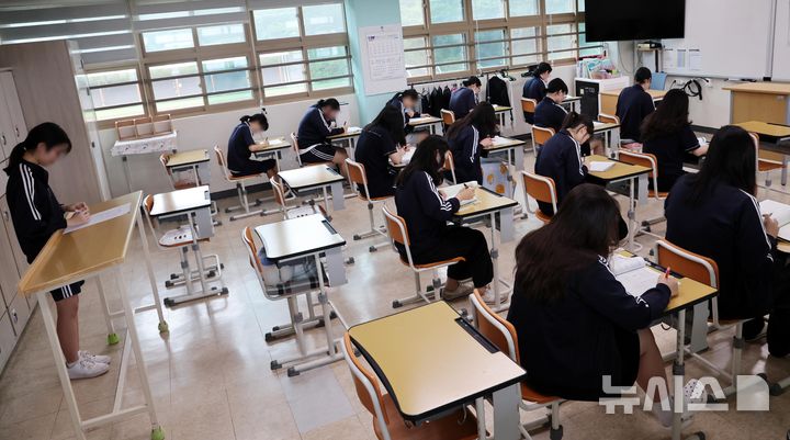 [부산=뉴시스] 하경민 기자 = 2026학년도 대학수학능력시험 100여일 앞둔 4일 부산 수영구 덕문여고에서 3학년 수험생들이 폭염 속에서 학생들이 공부에 열중하고 있다. 2025.08.04. [email protected]