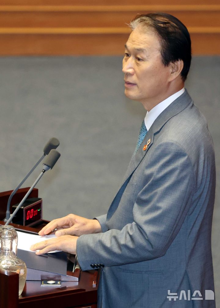 [서울=뉴시스] 조성봉 기자 = 권오을 국가보훈부 장관이 4일 오후 서울 여의도 국회에서 열린 제427회국회(임시회) 제3차 본회의에서 인사말을 하고 있다. 2025.08.04. [email protected]