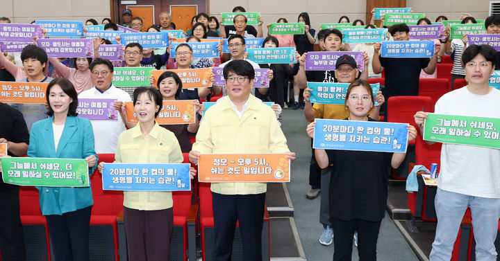 [예산=뉴시스] 강종민 기자 = 권재한 농촌진흥청장이 4일 충남 예산군 충남도농업기술원에서 '민관협력 온열질환 예방 공동 캠페인’을 벌이고 있다. (사진=농진청 제공) 2025.08.04. [email protected] *재판매 및 DB 금지