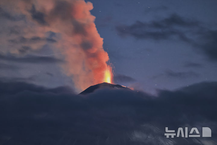 [캄차카반도=AP/뉴시스] 러시아 화산지진학 연구소가 제공한 사진에 4일(현지 시간) 러시아 캄차카반도 북부, 세계에서 가장 높은 활화산 중 하나인 클류쳅스카야 화산이 분화해 화산재를 내뿜고 있다. 이 화산이 분화하면서 화산재가 6㎞ 높이까지 솟아오른 것으로 알려졌다. 2025.08.05.