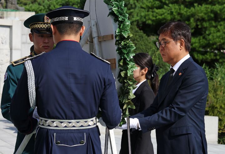 [서울=뉴시스] 최휘영 문화체육관광부 장관이 5일 오전 서울 동작구 국립서울현충원에서 헌화하고 있다. (사진=문화체육관광부 제공) 2025.08.05. [email protected] *재판매 및 DB 금지