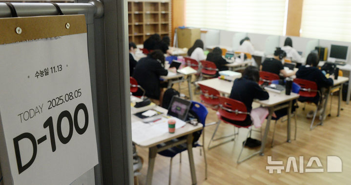 [전주=뉴시스] 김얼 기자 = 2026학년도 대학수학능력시험을 100일 앞둔 5일 전북 전주시 전주대학교사범대학부설고등학교에서 고등학교 3학년 수험생들이 공부를 하고 있다. 2025.08.05. [email protected]