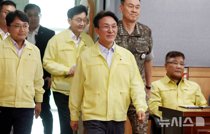 [서울=뉴시스] 추상철 기자 = 김민석 국무총리가 5일 오후 서울 종로구 정부서울청사 별관에서 열린 '을지연습 준비 보고회의'에 참석하고 있다. 2025.08.05. [email protected]