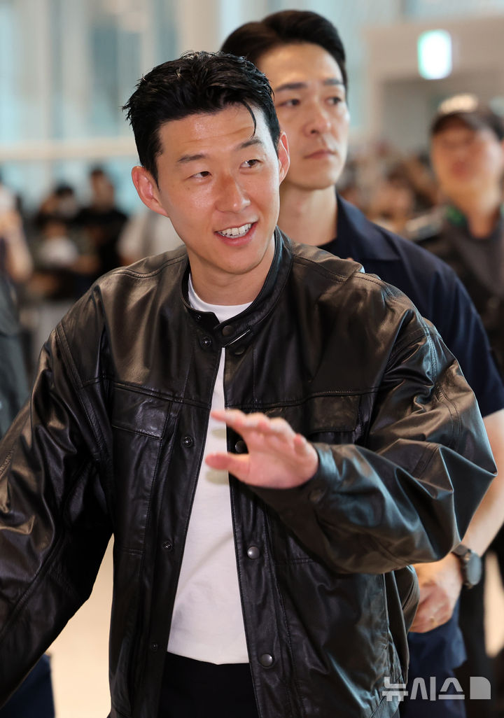 [인천공항=뉴시스] 배훈식 기자 = 토트넘을 떠나 미국 MLS로 이적이 확실시 되는 손흥민이 5일 오후 인천국제공항에서 미국 LA로 출국하며 팬들에게 손을 흔들고 있다. 2025.08.05. [email protected]