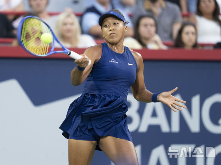 [몬트리올=AP/뉴시스] 오사카 나오미(49위·일본)가 5일(현지 시간) 캐나다 몬트리올에서 열린 여자프로테니스(WTA) 투어 옴니엄 뱅크 내셔널(WTA1000) 단식 8강전에서 엘리나 스비톨리나(13위·우크라이나)와 경기하고 있다. 오사카가 2-0(6-2 6-2)으로 승리하고 4강에 올랐다. 2025.08.06.