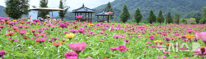 [거창=뉴시스] 6일 경남 거창군 남상면 거창창포원에 여름꽃의 대명사인 백일홍이 활짝 피어 있다. (사진=거창군 제공) 2025. 08. 06. [email protected]
