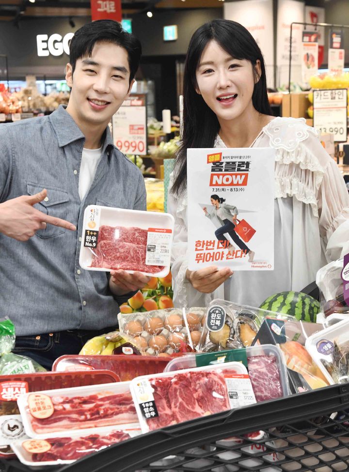[서울=뉴시스] 6일 서울 등촌동 홈플러스 메가 푸드 마켓 라이브 강서점에서 모델들이 마지막 '앵콜 홈플런 NOW' 행사 상품을 소개하고 있다.