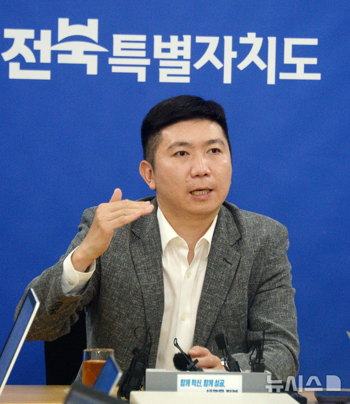 [전주=뉴시스] 김얼 기자 = 유승민 대한체육회장이 6일 전북 전주시 전북특별자치도청에서 열린 '올림픽데이런 2025 업무협약 체결식'에 앞서 기자실을 방문해 간담회를 갖고 질의에 답변하고 있다. 2025.08.06. [email protected]