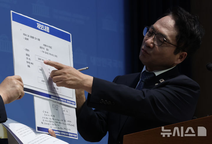 [서울=뉴시스] 김명년 기자 = 박선원 더불어민주당 의원이 6일 오후 서울 여의도 국회 소통관에서 '정치검찰 조작기소대응TF 긴급 기자회견'을 열고 김성태 전 쌍방울 회장의 보석 석방을 위한 판사 등을 상대로 한 로비의 증거라고 주장하는 제보 내용을 설명하고 있다. 2025.08.06. [email protected]