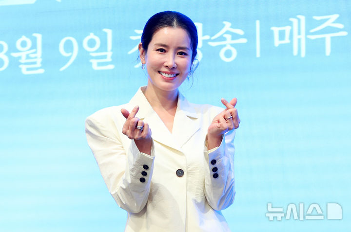[서울=뉴시스] 김혜진 기자 = 배우 이태란이 6일 오후 서울 구로구 더세인트에서 열린 KBS2 새 주말드라마 '화려한 날들' 제작발표회에서 포즈를 취하고 있다. 2025.08.06. [email protected]