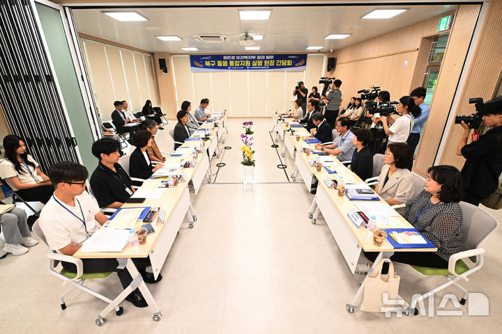 [광주=뉴시스] 이영주 기자 = 6일 오후 광주 북구 오치커뮤니티센터에서 정은경 보건복지부 장관이 참석하는 광주 북구 돌봄 통합지원 실행 현장 간담회가 열리고 있다. 2025.08.06. [email protected]