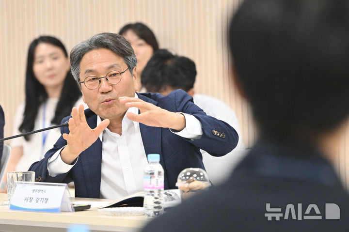 [광주=뉴시스] 이영주 기자 = 강기정 광주시장이 6일 오후 광주 북구 오치커뮤니티센터에서 열린 광주 북구 돌봄 통합지원 실행 현장 간담회에 참석해 관계공무원의 애로사항을 듣고 있다. 2025.08.06. [email protected]