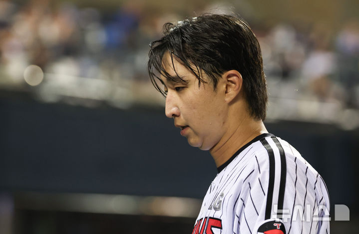 [서울=뉴시스] 황준선 기자 = 6일 서울 송파구 잠실야구장에서 열린 2025 KBO리그 두산 베어스와 LG 트윈스의 경기, 5회 초 LG 선발 최채흥이 교체되고 있다. 2025.08.06. [email protected]