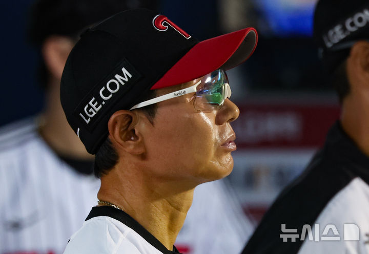 [서울=뉴시스] 황준선 기자 = 6일 서울 송파구 잠실야구장에서 열린 2025 KBO리그 두산 베어스와 LG 트윈스의 경기, LG 염경엽 감독이 경기를 지켜보고 있다. 2025.08.06. [email protected]