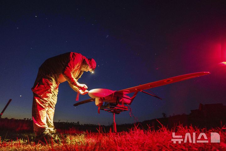[포크로우스크=AP/뉴시스] 6일(현지 시간) 우크라이나 국가방위군 제3여단 ‘스파르탄’ 소속 병사가 포크로우스크 전선 인근에서 펭귄 무인항공기(UAV)를 띄울 준비를 하고 있다. 2025.08.07.